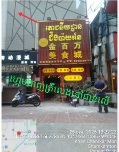 (ភ្នំពេញ)៖ មហាជន និងប្រជាពលរដ្ឋរស់នៅក្នុងមូលដ្ឋាន បានលើកឡើងពីការសង្ស័យថា ភោជនីយដ្ឋាន «ជីងប៉ាយអ័ន» មួយកន្លែង អាចមានការបង្កប់សកម្មភាពលេងល្បែងហ្គេមបាញ់ត្រីខ្នាតយក្ស ដែលគេសង្ស័យថាពាក់ព័ន្ធនឹងជនជាតិចិន នៅជាន់លើ នៃអាគារមួយ ស្ថិតនៅពីមុខអាគារឌឺព្រីត ក្នុងសង្កាត់ទន្លេបាសាក់ ខណ្ឌចំការមន រាជធានីភ្នំពេញ។
