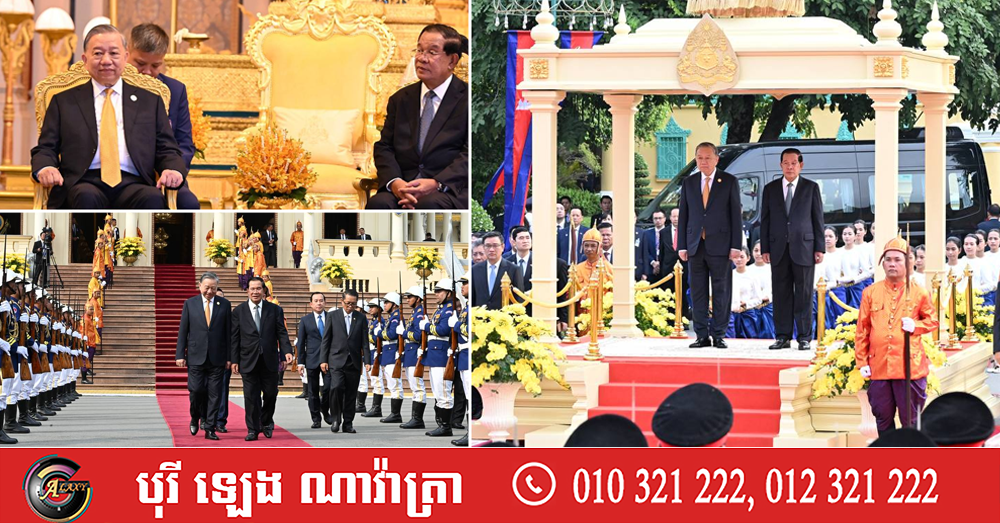 (ភ្នំពេញ)៖ នៅព្រះបរមរាជវាំង នាព្រឹកថ្ងៃសុក្រ ទី៦ ខែកុម្ភៈ ឆ្នាំ២០២៦នេះ សម្ដេចតេជោ ហ៊ុន សែន ប្រធានព្រឹទ្ធសភាកម្ពុជា បានអញ្ជើញជាព្រះរាជតំណាងដ៏ខ្ពង់ខ្ពស់បំផុត របស់ព្រះករុណា ព្រះបាទ សម្ដេចព្រះបរមនាថ នរោត្តម សីហមុនី ព្រះមហាក្សត្រនៃព្រះរាជាណាចក្រកម្ពុជា ទទួលបដិសណ្ឋារកិច្ចស្វាគមន៍ផ្លូវរដ្ឋជូនលោក តូ ឡឹម អគ្គលេខាធិការបក្សកុម្មុយនីស្តវៀតណាម ជាមួយនឹងជំនួបសាវនាកាផងដែរ។