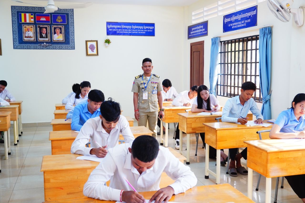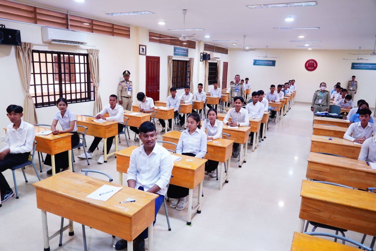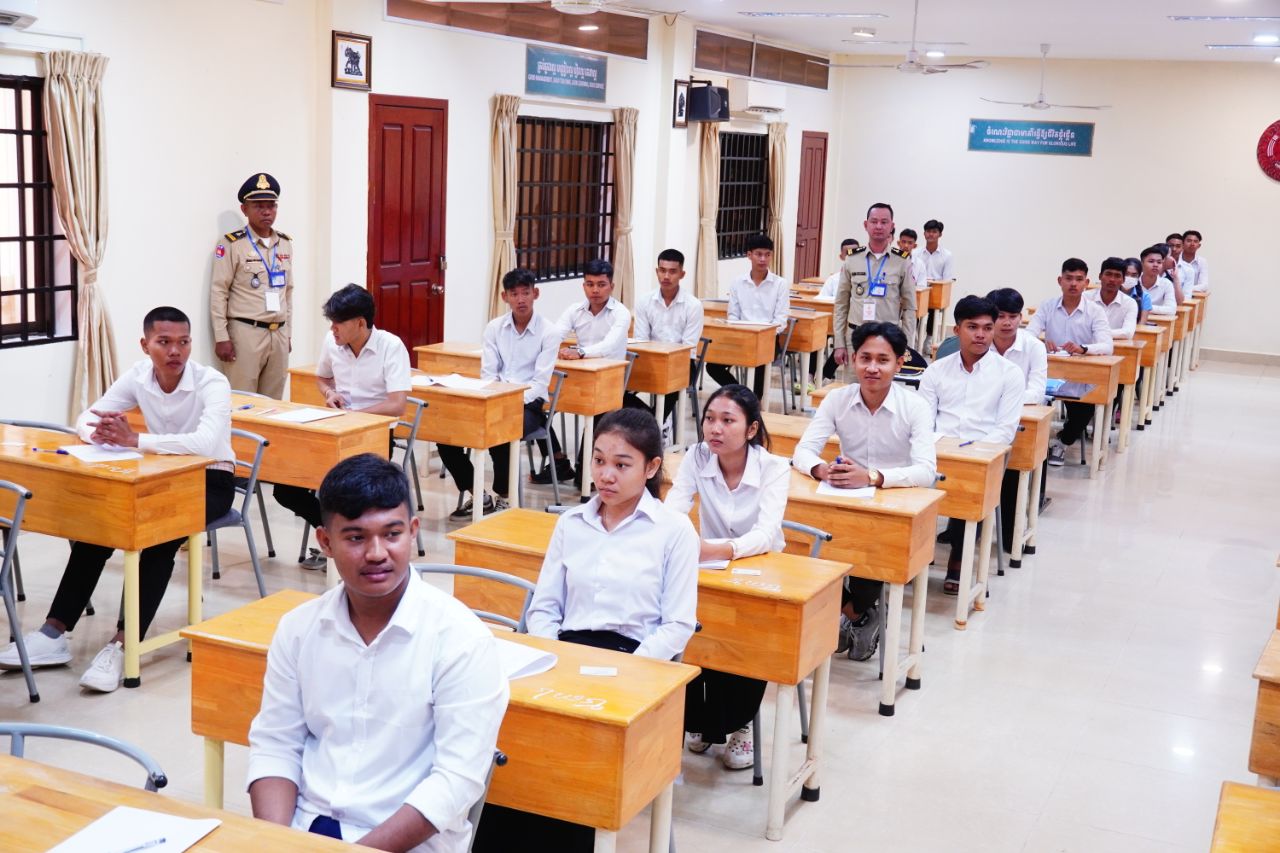(កណ្ដាល)៖ នៅបណ្ឌិត្យសភានគរបាលកម្ពុជានាចុងសប្ដាហ៍កន្លងទៅ បានរៀបចំការប្រឡងជ្រើសរើសសិស្ស-និស្សិតនគរបាលអាហារូបករណ៍ប្រចាំឆ្នាំ២០២៥ ដែលមានយុវជនចូលរួមប្រឡងជាច្រើននាក់ ដោយប្រព្រឹត្តទៅក្រោមអធិបតីភាពអភិសន្តិបណ្ឌិត ស សុខា ឧបនាយករដ្ឋមន្ត្រី រដ្ឋមន្ត្រីក្រសួងមហាផ្ទៃ និងជាប្រធានគណៈកម្មការប្រឡង។