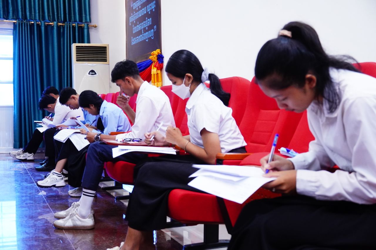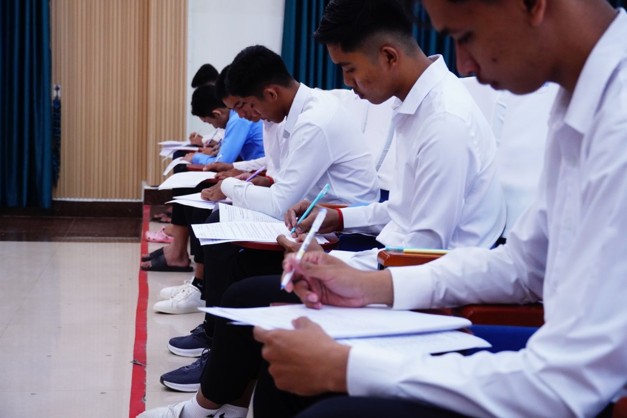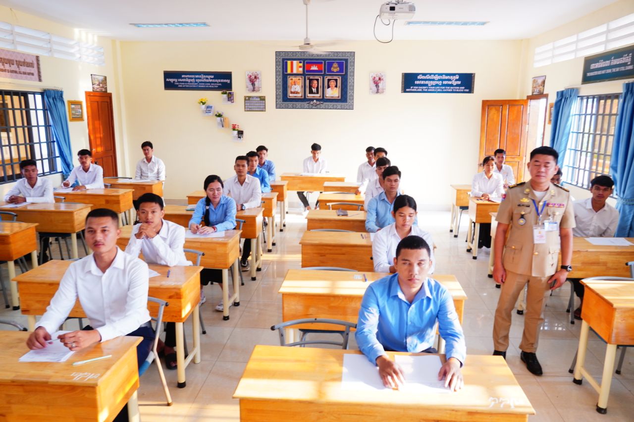 (កណ្ដាល)៖ នៅបណ្ឌិត្យសភានគរបាលកម្ពុជានាចុងសប្ដាហ៍កន្លងទៅ បានរៀបចំការប្រឡងជ្រើសរើសសិស្ស-និស្សិតនគរបាលអាហារូបករណ៍ប្រចាំឆ្នាំ២០២៥ ដែលមានយុវជនចូលរួមប្រឡងជាច្រើននាក់ ដោយប្រព្រឹត្តទៅក្រោមអធិបតីភាពអភិសន្តិបណ្ឌិត ស សុខា ឧបនាយករដ្ឋមន្ត្រី រដ្ឋមន្ត្រីក្រសួងមហាផ្ទៃ និងជាប្រធានគណៈកម្មការប្រឡង។