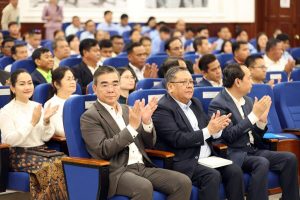 ឯកឧត្តមឧបនាយករដ្ឋមន្ត្រី ហ៊ុន ម៉ានី រដ្ឋមន្ត្រីក្រសួងមុខងារសាធារណៈ និងជាប្រធានសហភាពសហព័ន្ធយុវជនកម្ពុជា (ស.ស.យ.ក.)។