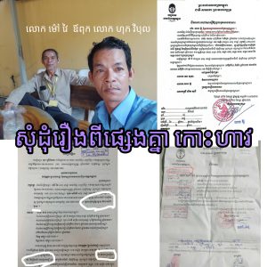 សាលាដំបូងខេត្តកណ្តាល បើកសវនាការលើសំណុំរឿងបរិហារកេរ្តិ៍ និងប្រើប្រាស់លិខិតក្លែង ពាក់ព័ន្ធទំនាស់ដីធ្លីនៅស្រុកស្អាង